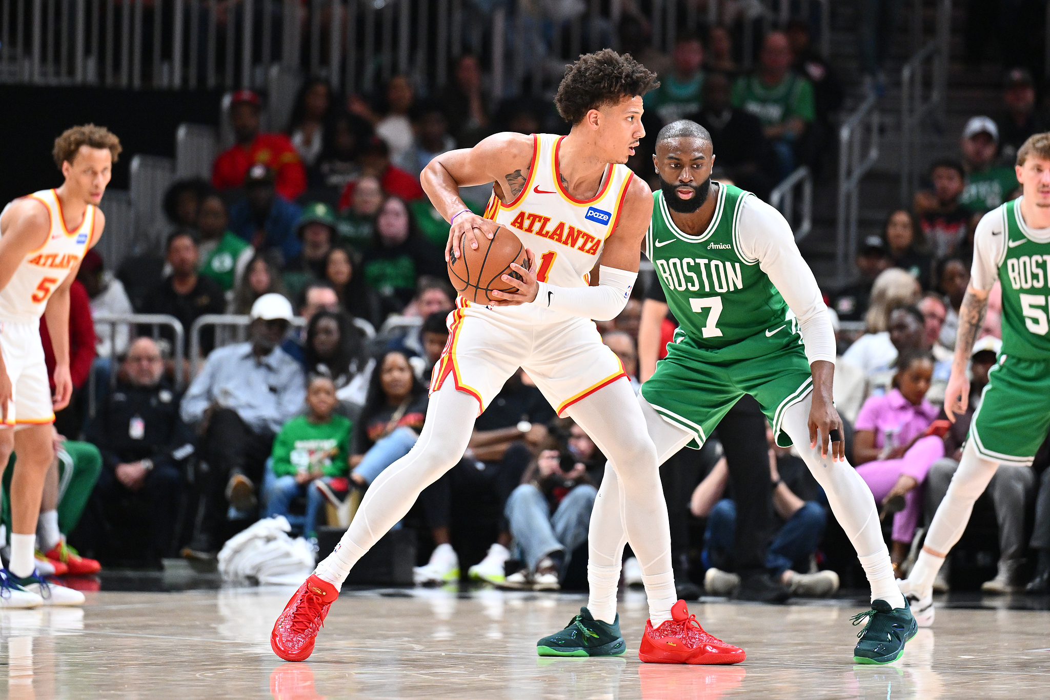 老鹰方面,杰伦·约翰逊20分12篮板5助攻,奥孔古20分10篮板3抢断,丹尼尔斯18分5篮板5助攻,亚历山大·沃克17分4篮板6助攻,麦科勒姆14分6助攻;凯尔特人方面,布朗复出空砍29分10篮板9助攻,加尔扎20分9篮板,普里查德16分,怀特7分5篮板4助攻,塔图姆休战。